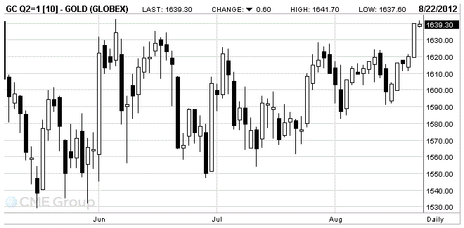 Стоимость августовского фьючерса на золото на COMEX сейчас составляет 1639.3 доллара за унцию.