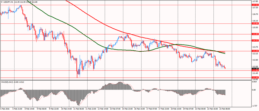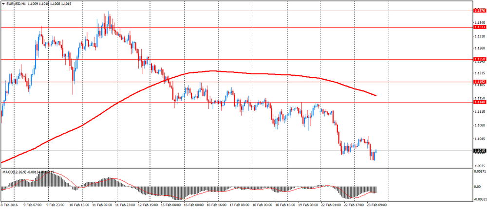 Евро подешевел более чем на 100 пунктов против доллара, приблизившись до уровня $1.1000. Эксперты отмечают, что причиной такой динамики были слабые данные по деловой активности в еврозоне, укрепление американской валюты и обеспокоенность потенциальными перспективами выхода Британии из ЕС. Вчера компания Markit заявила, что ее индекс деловой активности в производственном секторе Германии упал в феврале до 50,2 с 52,3. Ожидалось снижение до 52,0. Индекс деловой активности в секторе услуг Германии вырос в этом месяце до 55,1 с 55,0 в январе, превысив ожидания роста до 54,7. Французский индекс PMI в производственном секторе вырос в феврале до 50,3 с 50,0, превысив ожидания понижения до 49,9. Индекс деловой активности в секторе услуг Франции опустился до 49,8 с 50,3 в январе по сравнению с ожиданиями отсутствия изменений. В еврозоне предварительный композитный индекс менеджеров по закупкам упал до 52,7 в феврале с 53,6 в январе. Прогнозировалось, что индекс несколько снизится до 53,5 в феврале. PMI в секторе услуг еврозоны достиг 13-месячного минимума 53 по сравнению с 53,6 месяц назад. Экономисты ожидали, что показатель составит 53,4. PMI для производственного сектора еврозоны упал до 51 от 52,3 в январе. Ожидаемый результат был 52.