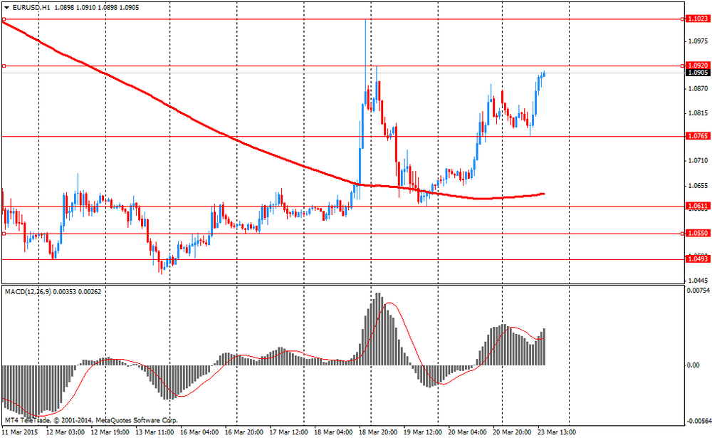 Небольшое влияние также оказали данные по еврозоне. Результаты исследований, представленные Европейской комиссией, показали: уверенность среди потребителей еврозоны заметно выросла в марте, достигнув при этом самого высокого значения с июля 2007 года, что отражает увеличение реальных доходов от падения цен на нефть и надежды на ускорение экономического роста после запуска программы количественного смягчения ЕЦБ. Согласно отчету, предварительный индекс потребительского доверия вырос в марте до -3,7 с -6,7 в феврале. Ожидалось, что показатель улучшится в марте только до уровня -6 пунктов. В Европейской комиссии также сообщили, что индекс потребительского доверия зафиксировал свое четвертом месячное повышение подряд, что может помочь уменьшить обеспокоенность по поводу дальнейших перспектив инфляции.