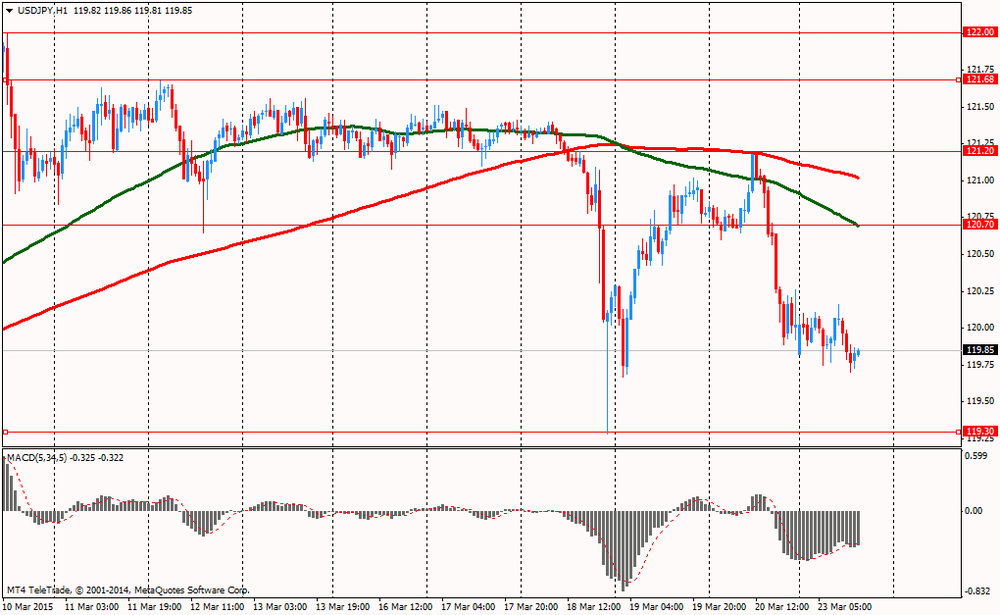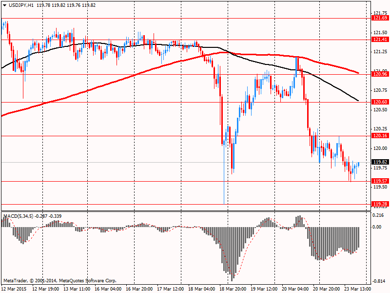 Иена умеренно укрепилась против доллара, обновив максимум 19 марта. Первоначально поддержку валюте оказали комментарии представителя ФРС Булларда о том, что ФРС рискует опоздать, если слишком затянет процесс первого повышения ставки, и тогда в будущем потребуется более сильное повышение. Он также добавил, что процесс повышения ставки будет зависеть от данных, а рост доллара в последние месяцы стал скорее результатом политики ЕЦБ. Также он прогнозирует, что рост ВВП США на конец 2015 должен составить 3.00%.
