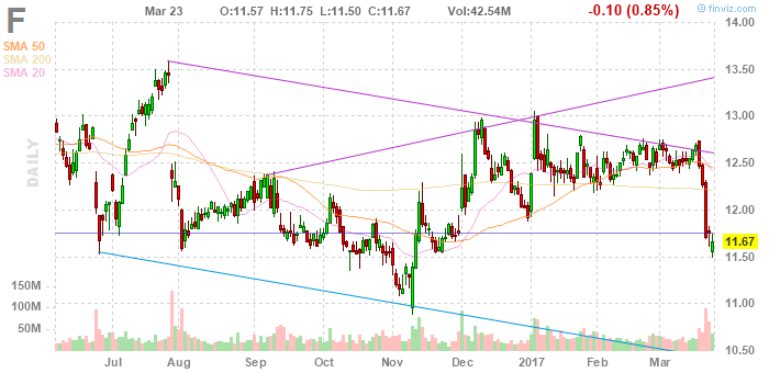 На текущий момент акции Ford (F) котируются по $11,67 (-0,85%)