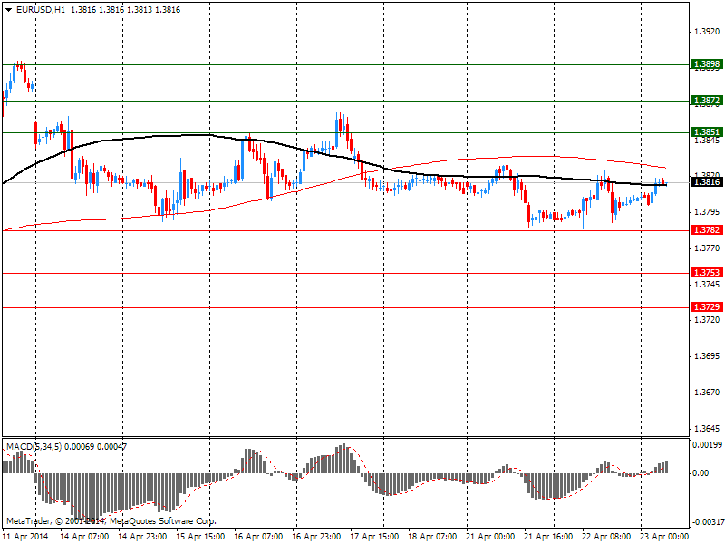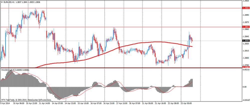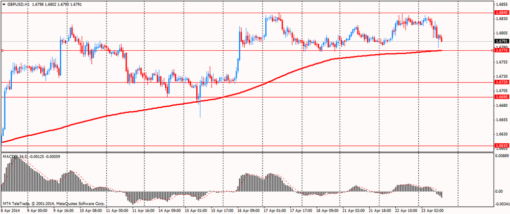 После открытия рынка стал известен предварительный индекс деловой активности в производственном секторе США за апрель. Так, индекс продемонстрировал незначительное замедление темпов расширения. Отчет показал, что данный индекс снизился до 55,4 с 55,5 (окончательное чтение за март), по сравнению с прогнозами роста на уровне 56,2 пункта.