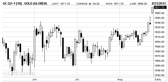 Золото продолжило свою выигрышную серию, которая длится уже седьмой день подряд, так как протоколы ФРС неожиданно дали сигнал, что центральный банк может принять дополнительные меры для стимулирования экономики.