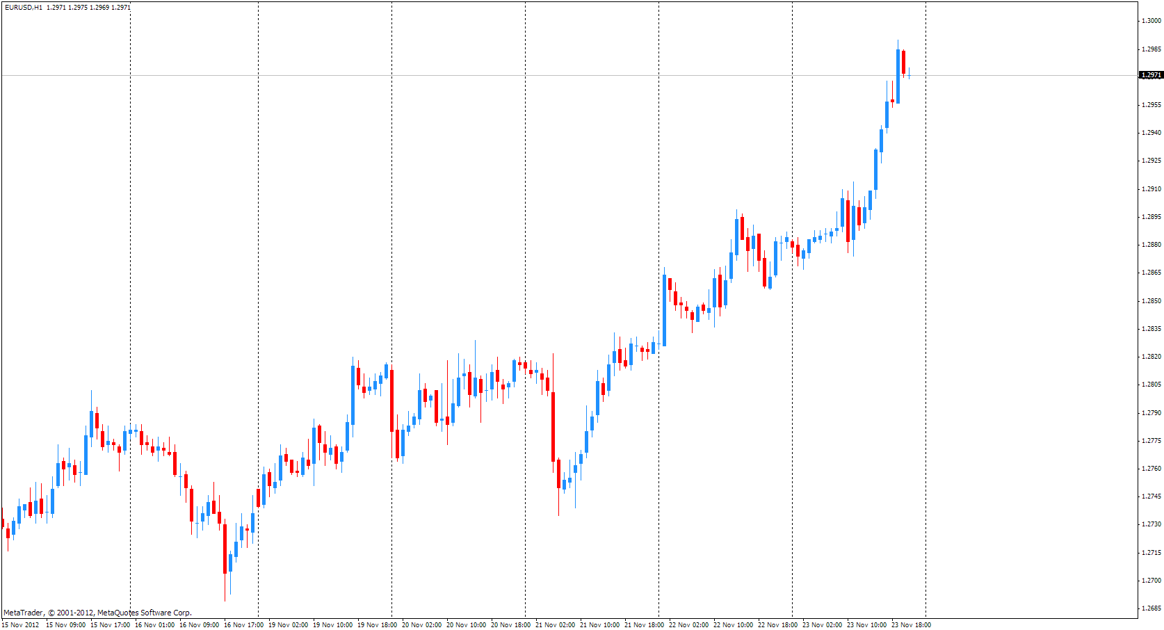Вчера, евро вырос до двухнедельного максимума против доллара после того, как отчет показал, что Производственный индекс Китая вырос в этом месяце, добавив доказательств того, что вторая по величине экономики мира набирает обороты. Согласно предварительным данным, данный показатель вырос в ноябре до уровня 50,4, по сравнению с окончательным значением октября на отметке 49,5.