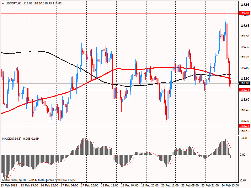 Иена резко выросла против доллара, вернувшись при этом к уровню открытия. Пара USD/JPY оказалась под давлением на фоне выступления Йеллен и данных по индексу потребдоверия США. Отчет, представленный Conference Board, показал: индекс потребительского доверия США упал в феврале до уровня 96,4 пункта против 103,8 пункта в январе (пересмотрено с 102,9 пункта). Экономисты ожидали, что индекс снизится до 99,6 пункта. В докладе говорилось, что индекс ожиданий снизился до 87,2 в феврале с 97,0 в январе, так как доля потребителей, ожидавших улучшения условий для ведения бизнеса в течение ближайших шести месяцев, упала до 16,1 процента с 18,9 процента. Тем временем, число ожидающих ухудшения бизнес-условия выросло до 8,7 процента с 8,2 процента. Также потребители были настроены менее оптимистично в отношении перспектив на рынке труда - показатель, оценивающий мнение касательно изменения числа новых рабочих мест в ближайшие месяцы, снизился до 13,4 процента с 17,3 процента. В Conference Board также сказали, что индекс текущих условий упал в феврале до 110,2 с 113,9 в январе. Доля потребителей, полагающих, что условия для бизнеса "хорошие", упала до 26,0 процента с 28,2 процента, в то время как число сообщивших об обратном снизилось до 17,0 процента с 17,3 процента. Линн Франко, эксперт Conference Board, сказал: "После заметного роста в январе, индекс потребительского доверия ухудшился, но до сих пор остается вблизи докризисных уровней".