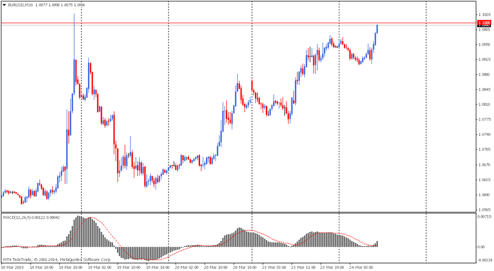 Небольшое влияние также оказали данные по еврозоне. Результаты исследований, представленные Европейской комиссией, показали: уверенность среди потребителей еврозоны заметно выросла в марте, достигнув при этом самого высокого значения с июля 2007 года, что отражает увеличение реальных доходов от падения цен на нефть и надежды на ускорение экономического роста после запуска программы количественного смягчения ЕЦБ. Согласно отчету, предварительный индекс потребительского доверия вырос в марте до -3,7 с -6,7 в феврале. Ожидалось, что показатель улучшится в марте только до уровня -6 пунктов. В Европейской комиссии также сообщили, что индекс потребительского доверия зафиксировал свое четвертом месячное повышение подряд, что может помочь уменьшить обеспокоенность по поводу дальнейших перспектив инфляции.