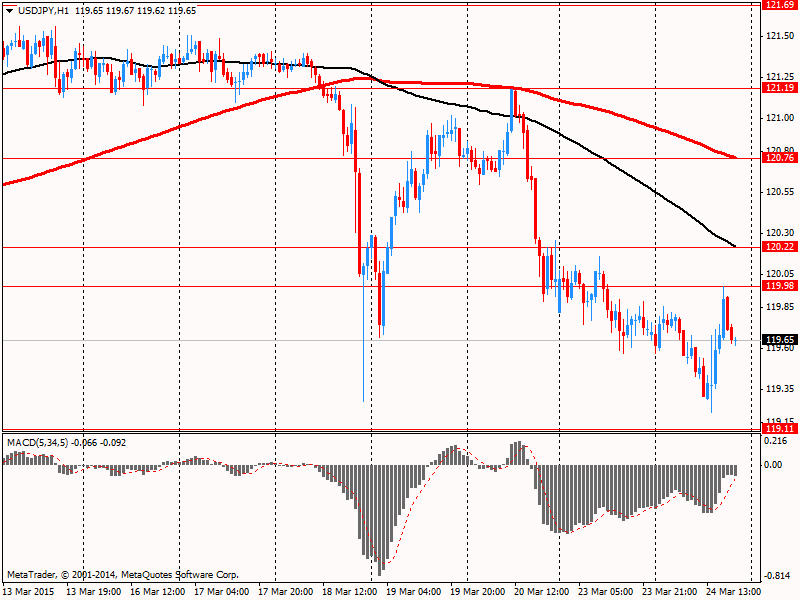 Иена умеренно укрепилась против доллара, обновив максимум 19 марта. Первоначально поддержку валюте оказали комментарии представителя ФРС Булларда о том, что ФРС рискует опоздать, если слишком затянет процесс первого повышения ставки, и тогда в будущем потребуется более сильное повышение. Он также добавил, что процесс повышения ставки будет зависеть от данных, а рост доллара в последние месяцы стал скорее результатом политики ЕЦБ. Также он прогнозирует, что рост ВВП США на конец 2015 должен составить 3.00%.