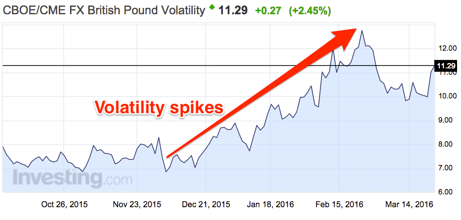 Фунтовые трейдеры становятся все более нервными относительно перспектив "Brexit" и влияния данного события на экономику Великобритании, так как дата референдума была официально подтверждена, и поступающие свежие новости по Британии оказывают давление на валюту. Вчера фунт упал после того, как итоги опроса общественного мнения от ICM указали, что выход из ЕС в настоящее время является более популярным вариантом, чем сохранение страны в блоке. Когда мэр Лондона и консерватор Борис Джонсон объявил о своем намерении поддержать кампанию по выходу из ЕС в конце февраля, фунт потерял более 2% в течение одного дня, и достиг семилетнего минимума. Кроме того, усиление опасений привело к повышению волатильности фунта до уровней, не наблюдавшихся в течение года.