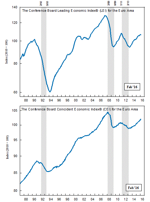 Результаты исследований, опубликованные Conference Board, показали: по итогам февраля ведущий экономический индекс (LEI) для еврозоны упал на 0,2 процента, до 106,5 пункта (2010=100) после роста на 0,1 процента в январе и повышения на 0,2 процента в декабре. В течение шести месяцев (по февраль) данный показатель увеличился на 0,8 процента по сравнению с увеличением на 1,2 процента в течение предыдущих шести месяцев.