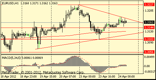 Начало недели также сопровождалось политической нестабильностью в некоторых странах Европы. Так, премьер-министр Нидерландов Марк Рютте в понедельник подал в отставку после неудачных переговоров с оппозицией по бюджету 2013 года и возможных мерах выхода из кризиса. Инвесторы также продолжают следить за ходом президентских выборов во Франции. По итогам первого тура представитель Социалистической партии Франсуа Олланд и действующий президент, лидер правящего "Союза за народное движение" Николя Саркози прошли во второй тур с 28,63% и 27,18% голосов соответственно.