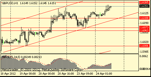 GBP/USD: пара показала максиму в области $1,6160 после чего снизилась в область $1,6130.