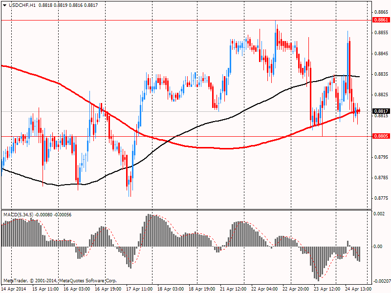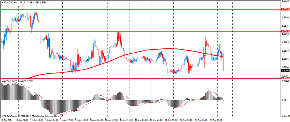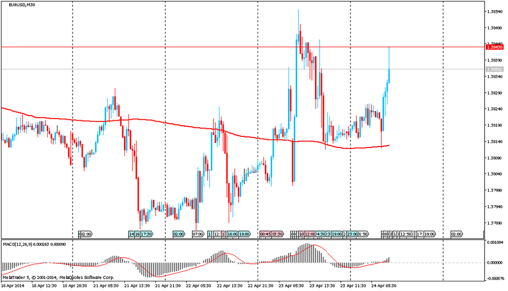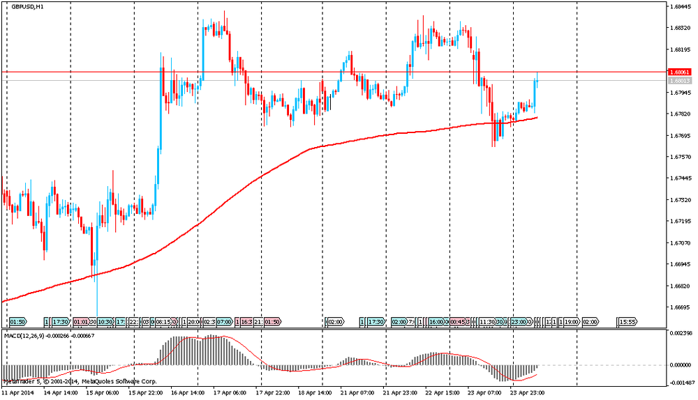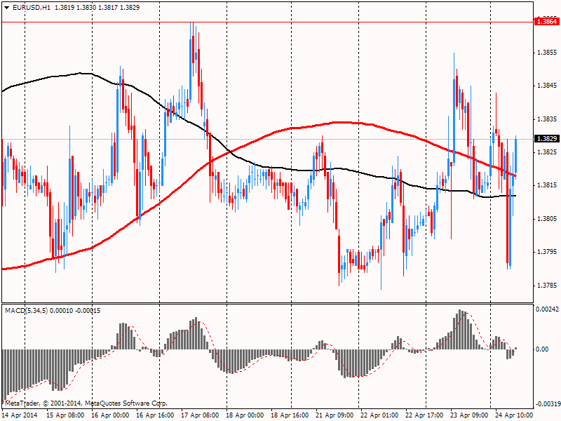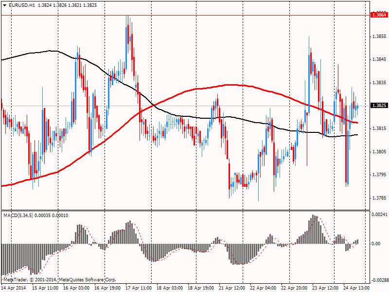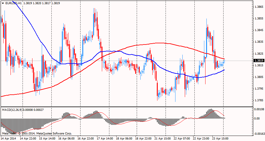 Между тем, еще одни данные показали: индекс деловой активности в промышленности США от Markit в апреле, по предварительным данным, снизился c 55,5 до 55,4. Индекс остаётся на уровне, показывающем расширение активности (выше 50). Апрельские данные указали на ускорение роста объёма выпуска. (Максимальное значение с марта 2011г.) Участники опроса в основном указывают на улучшение условий в экономике и повышение спроса внутри страны. Уверенность в перспективах бизнеса привели к росту занятости в промышленности, продолжающееся 10 месяцев.