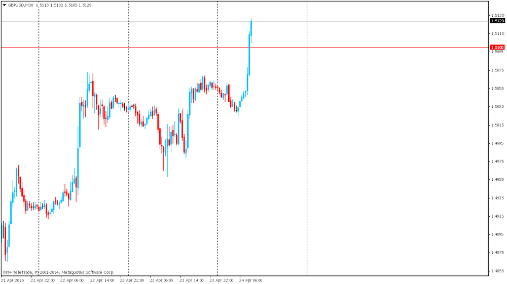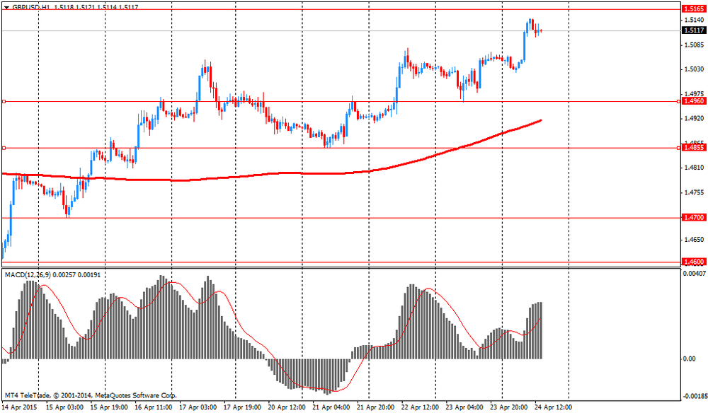 Заметное укреплением фунта было связано с выходом смешанных данных по заказам на товары длительного пользования США. Кроме того, рынок продолжал следить за новости по Греции. Эксперты отмечают, что валюта проявляет устойчивость перед лицом неопределенности, окружающей исход выборов, что связано с пересмотром ожиданий в отношении Банка Англии. Впрочем, рынки закладывают в цены почти нулевую вероятность повышения ставок ЦБ в этом году. На ход торгов также влияли ожидания публикации данных по Британии - во вторник выйдет отчет по ВВП (ожидается замедление с 0.6% в 4 квартале до 0.5% в 1 квартале), а в пятницу - производственный PMI, который может продемонстрировать снижение.