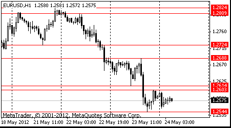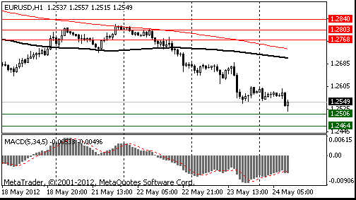 Курс евро колеблется по отношению к доллару после падения до минимума июля 2010 года в преддверии завтрашнего саммита «Большой Восьмерки» и ожиданий инвесторов, что Греции все же удастся остаться в составе Евросоюза. Что касается опубликованной статистики, хуже ожиданий оказались данные по индексу деловой активности в сфере услуг и в производственной сфере Еврозоны — в сфере услуг показатель составил 46,5 пунктов, аналогичный показатель в производственном секторе составил 45 пунктов. Продажи евро также спровоцировали данные по индексу настроений в деловых кругах Германии Ifo, который в мае упал до уровня 106,9 пункта при прогнозах снижения до отметки 109,5 пункта.