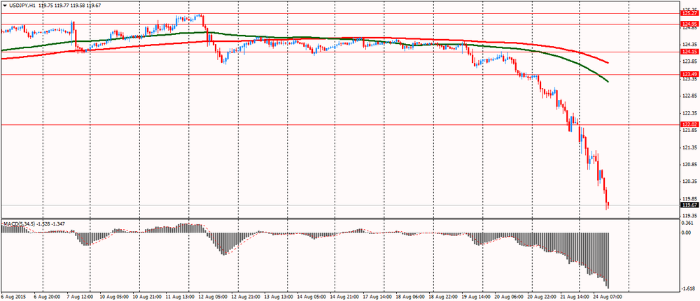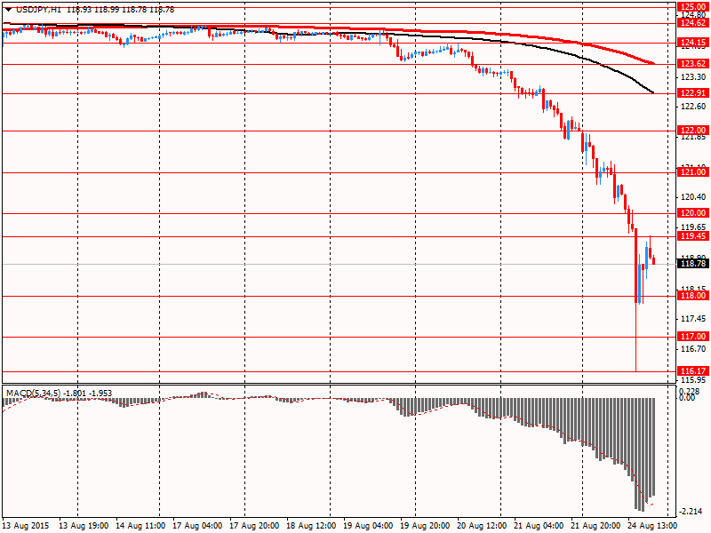 Иена укрепилась почти на 600 пунктов против доллара США, ненадолго приблизившись до отметки Y116, так как участников рынка напугало падение фьючерсов S&P до уровней остановки торгов. Позднее иена начала сдавать позиции, и поднялась выше уровня Y119. Аналитики отмечают, что доллар просел на фоне падения фьючерсов S&P 500 на 5%, за которым последовал обвал европейских индексов. Торговля по S&P 500 была приостановлена. Новые признаки замедления второй по величине экономики мира - Китая - ранее привели к падению азиатских и европейских индексов. Решение китайских властей разрешить инвестировать средства пенсионного фонда в акции не смогло поддержать фондовый рынок страны. Отсутствие новых решений по спасению рынка от распродаж усилило опасения инвесторов. «Рынки боятся дальнейших экономических проблем в Китае, дальнейшего ослабления глобальных сырьевых рынков и неопределенности по поводу реакции ФРС США и Народного банка Китая - что они будут делать и каковы будут последствия», - отметил аналитик Societe Generale Кит Джукс. Без решительных действий со стороны китайских властей торможение экономики и падение фондового рынка продолжится. Бегство от рисков и снижение вероятности повышения ставки ФРС также оказывает поддержку японской валюте.