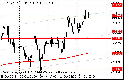 В ходе азиатских торгов евро продолжает рост против доллара США, на фоне того, что европейские лидеры заявили, что в течение ближайших дней согласуют план действий по сдерживанию долгового кризиса ЕС. Европейские лидеры предприняли первые шаги по направлению к разработке нового антикризисного плана, признав, что их последний масштабный план, согласованный всего три месяца назад, не сработал. Новый пакет мер, который, как ожидается, будет согласован на саммите в среду, включает масштабную рекапитализацию европейских банков, существенную реструктуризацию греческих долгов и пополнение фонда финансовой помощи. Кроме того, европейские власти, возможно, попытаются позвать на помощь суверенные фонды Китая и других стран.