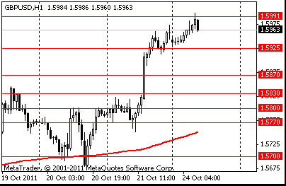 Комментарии: пара торгуется с повышением. В фокусе сопротивление $1.5985.