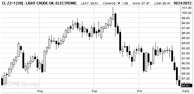 Стоимость декабрьских фьючерсов на американскую легкую нефть марки WTI (Light Sweet Crude Oil) составляет 85,61 доллара за баррель на Нью-Йоркской товарной бирже.