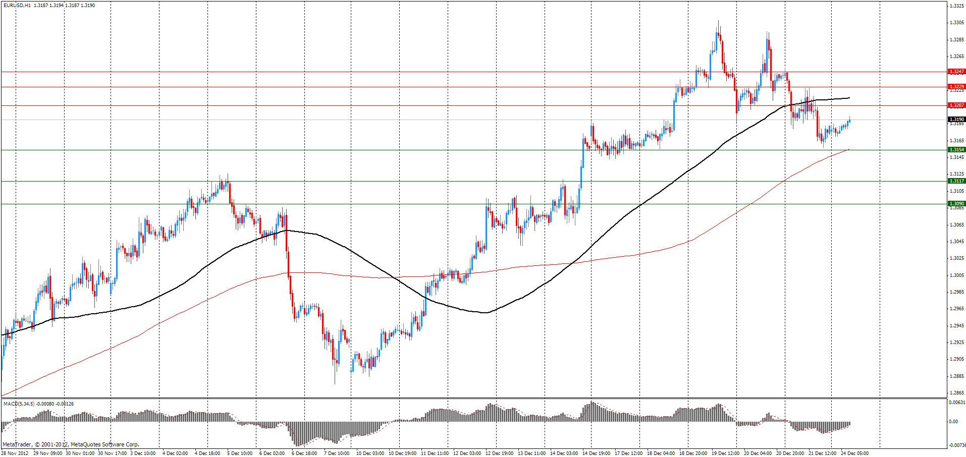 Доллар удерживал свои позиции против евро на фоне опасений, что американские законодатели так и не смогут договорится между собой и избежать так называемого финансового обрыва. Начиная с 27 декабря лидеры Конгресса США попытаются согласовать компромиссный законопроект, призванный предотвратить хотя бы самые болезненные налоговые последствия приближающегося "бюджетного обрыва", отложив комплексное решение проблемы до начала будущего года. В пятницу президент США Барак Обама призвал лидеров обеих партий, учитывая дефицит времени, договориться хотя бы о минимальном компромиссе по налогам, чтобы избежать повышения ставок для 98% граждан страны и продлить выплату пособий по безработице для 2 млн американцев. Как сказал при этом Обама, который проводит рождественские каникулы на Гавайях и вернется в Вашингтон только во второй половине недели, он по-прежнему готов и стремится к комплексному решению. По мнению президента, времени для достижения комплексного соглашения в 2012 году уже не остается. Со своей стороны спикер Палаты представителей республиканец Джон Бейнер заявил, что готов к новым переговорам, но после неудачи с прохождением через палату разработанного им законопроекта считает, что первым должен сказать свое слово Сенат, где большинство имеют демократы. Сенат теоретически может рассмотреть свой законопроект в четверг.