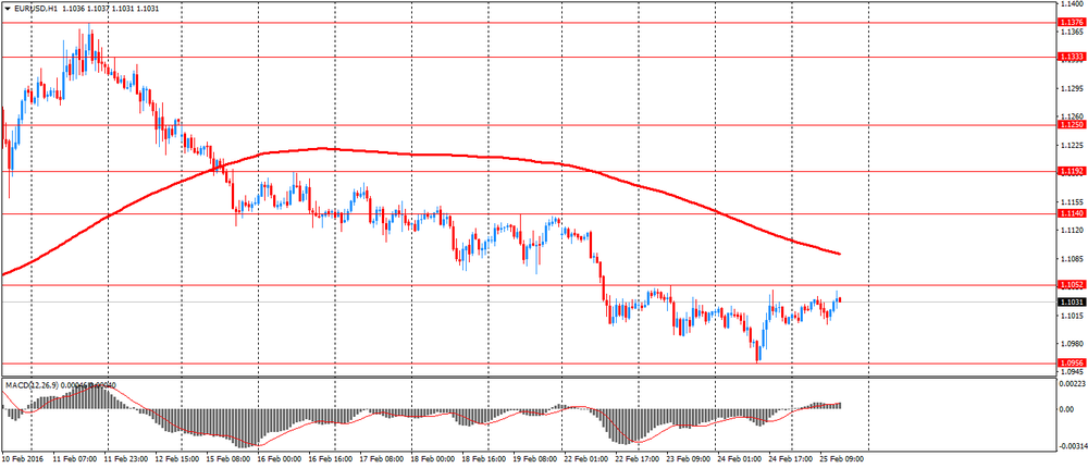 Евро вырос примерно 0,1% после касания трехнедельного минимума в течение ночи. Причиной этого стали слабые данные по США. Предварительный отчет, представленный Markit, показал, что активность в сфере услуг США резко ухудшилась в феврале, достигнув 28-месячного минимума и завершив 27-месячную серию устойчивого расширения. Предварительный индекс менеджеров по снабжению (PMI) для сферы услуг в феврале упал до 49,8 пункта против 53,2 пункта в январе. Экономисты ожидали роста индекса до 53,5. Напомним, значение индекса ниже 50 пунктов указывают сокращение активности в секторе. Респонденты сообщили, что слабый рост новых заказов и неопределенность в отношении экономических перспектив были основной причиной ухудшения активности в феврале. Негативное влияние также оказали перебои в работе, связанные с сильными снегопадами на восточном побережье страны. Данные показали, что темпы роста новых заказов замедлились в третий раз подряд. Тем временем, индекс занятости опустился до минимального значения с конца 2009 года. С учетом сезонных колебаний, композитный индекс PMI составил 50,1 пункта против 53,2 в январе.