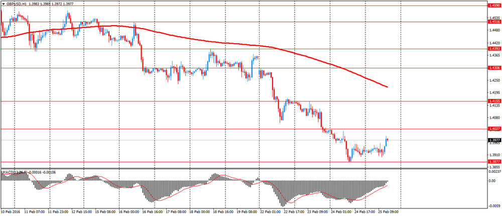 Фунт умеренно подешевел против доллара, вернувшись до уровня открытия. Первоначально фунт поднялся до $1.4000 на фоне общего снижения американской валюты и данных по ВВП Британии, однако после публикации данных по США спрос на доллар вернулся. Напомним, Управление национальной статистики (ONS) сообщило, что экономика Великобритании расширилась в соответствии с предварительными оценками в четвертом квартале. Валовой внутренний продукт вырос на 0,5 процента последовательно, в соответствии с предварительными оценками, опубликованными 28 января. Рост был немного быстрее, чем расширение на 0,4 процента в третьем квартале. На ежегодной основе ВВП вырос на 1,9 процента, в соответствии с ранее опубликованной оценкой. В четвертом квартале выпуск в сфере услуг поднялся на 0,7 процента последовательно, в соответствии с предварительными оценками. Выпуск в сфере услуг вырос на 2,5 процента в 2015 году после роста на 3,3 процента. В 4-м квартале инвестиции в бизнес расширились на 2,4 процента по сравнению с 2014 годом. В 2015 году инвестиции выросли на 4,7 процента.