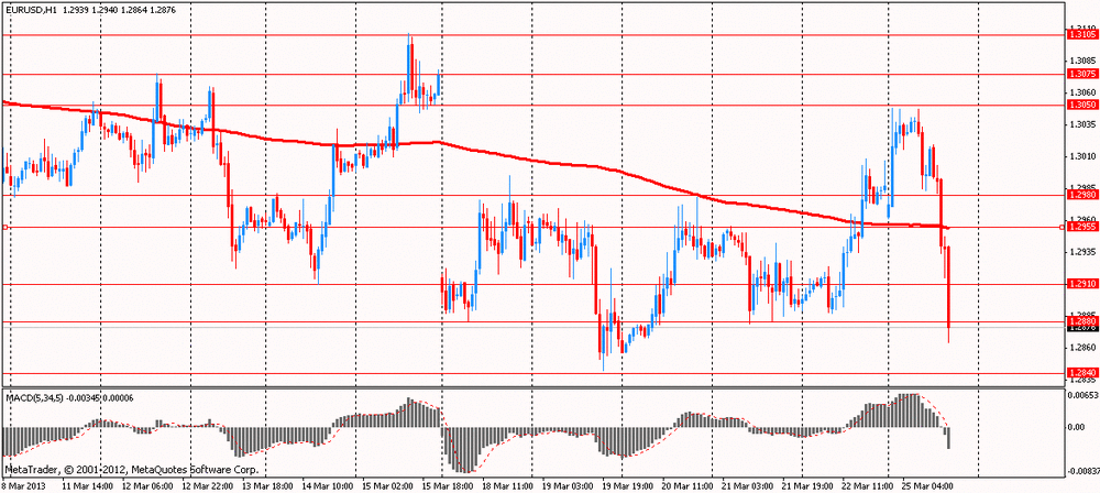 Единая валюта упала против всех 16 наиболее торгуемых валют, после того, как голландский министр финансов и Председатель Еврогруппы Йерун Дейсселблум заявил, что важно избежать рисков в государственном секторе. Кроме того, он добавил, что соглашение по Кипру может привести к реструктуризации банковского сектора. Между тем, он считает, что после Кипра Еврозону ожидает жесткий банковский режим.