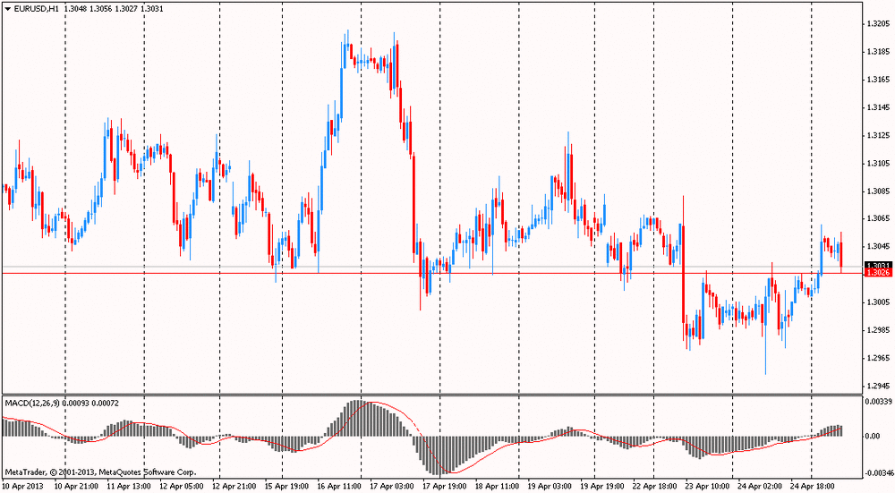 Курс евро существенно ослаб по отношению к большинству основных валют на спекуляциях, что Европейский центральный банк снизит ключевую процентную ставку до рекордно низкого уровня уже на следующей неделе, поддержав таким образов экономику региона. Заметим, что аналитики начали прогнозировать снижение в мае после того, как данные о деятельности сферах производства и услуг за апрель указали на слабость экономического роста. Чиновники из комитета по денежной политике ЕЦБ также указали, что они могут рассмотреть вопрос о снижении ставки на конференции, которая пройдет 2 мая. Президент Марио Драги заявил еще 19 апреля, что не видит каких-либо улучшений по экономическим данным, намекая, что он может снизить стоимость заимствований, если восстановление экономки затормозится.