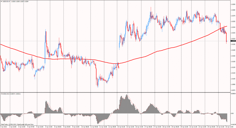 Канадский доллар достиг самого высокого уровня более чем за неделю против доллара США, после того, как данные показали, что экономика Великобритании смогла избежать сокращения в первом квартале, что вызвало интерес к рискованным активам. Валюта также укрепилась против большинства основных на фоне того, что Департамент труда США сообщил, что количество американцев, которые впервые обратились за пособием по безработице, упало на прошлой неделе почти до пятилетнего минимума, что является знак того, что работодатели видят повышенный спрос и могут увеличить численность найма. Согласно отчету, на неделе, завершившейся 20 апреля, число первичных обращений за пособием по безработице уменьшилось с учетом сезонных колебаний на 16000, достигнув при этом уровня 339000. Заметим, что это был самый низкий уровень с начала марта, а второй минимальный уровень с января 2008 года. Согласно средним прогнозам экспертов, значение данного показателя должно было остаться без изменений на уровне 352 тыс., о которых первоначально сообщалось в прошлом обзоре. Также стоит отметить, что значение за предыдущую неделю было пересмотрено в сторону повышения до уровня 355 тыс. Кроме того, данные показали, что среднее число первичных обращений за последние четыре недели снизилось на 4500 до 357 500. Экономисты отмечают, что представленный отчет является признаком того, что рынок труда неуклонно, хотя и медленно, прогрессирует. Как правило, снижение количества пособий означает, что работодатели все меньше сокращают число рабочих, и, возможно, нанимают больше.