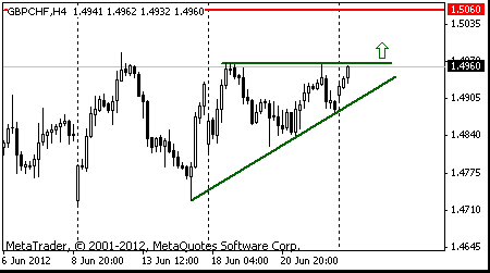 На четырехчасовом графике пара GBP/CHF формирует фигуру “восходящий треугольник”: