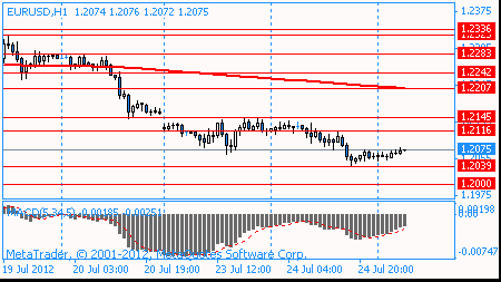 Также единая валюта укрепилась по отношению к большинству из 16 наиболее торгуемых валют, так как доходность испанских и итальянских облигации снизилась на фоне оптимизма, так как европейского фонд стабильности будет способствовать сдерживанию долгового кризиса в регионе. Доходность 10-летних облигаций Испании упала на 25 базисных пунктов до уровня 7,38%, в то время как итальянских снизилась на 15 базисных пунктов до 6,45%. Курс евро вырос по отношению к доллару после того, как данные показали, что продажи новых домов в США неожиданно снизился в июне. Фунт резко снизился по отношению к доллару, что было вызвано публикацией данных по ВВП, согласно которым британская экономика сокращается третий квартал подряд.