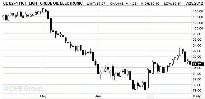 Несмотря на оптимизм, цена на нефть упала с уровня $ 106 за баррель почти за три месяца на фоне замедления глобальной экономики, а также в связи с тем, что Европа погрязла в долговом кризисе, рост в Китае уменьшился, а восстановление в США замедлилось.