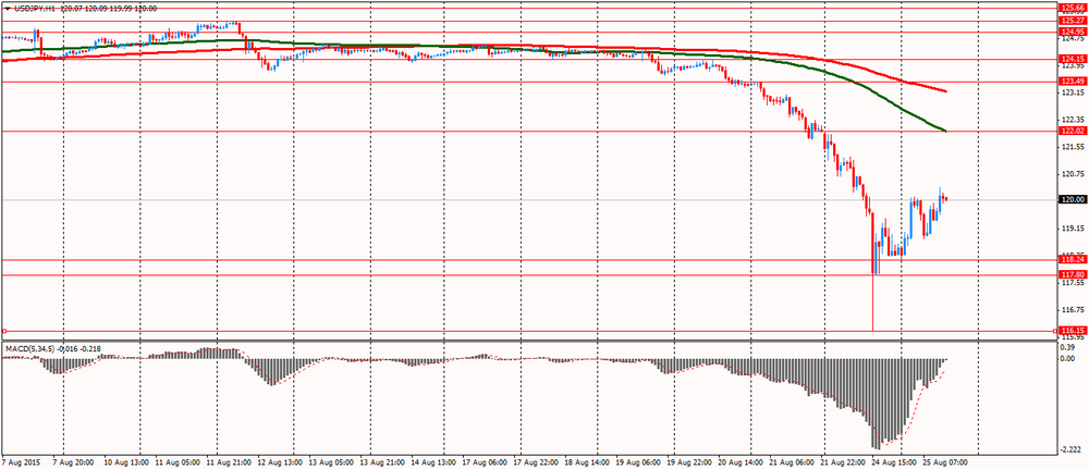 Иена укрепилась почти на 600 пунктов против доллара США, ненадолго приблизившись до отметки Y116, так как участников рынка напугало падение фьючерсов S&P до уровней остановки торгов. Позднее иена начала сдавать позиции, и поднялась выше уровня Y119. Аналитики отмечают, что доллар просел на фоне падения фьючерсов S&P 500 на 5%, за которым последовал обвал европейских индексов. Торговля по S&P 500 была приостановлена. Новые признаки замедления второй по величине экономики мира - Китая - ранее привели к падению азиатских и европейских индексов. Решение китайских властей разрешить инвестировать средства пенсионного фонда в акции не смогло поддержать фондовый рынок страны. Отсутствие новых решений по спасению рынка от распродаж усилило опасения инвесторов. «Рынки боятся дальнейших экономических проблем в Китае, дальнейшего ослабления глобальных сырьевых рынков и неопределенности по поводу реакции ФРС США и Народного банка Китая - что они будут делать и каковы будут последствия», - отметил аналитик Societe Generale Кит Джукс. Без решительных действий со стороны китайских властей торможение экономики и падение фондового рынка продолжится. Бегство от рисков и снижение вероятности повышения ставки ФРС также оказывает поддержку японской валюте.