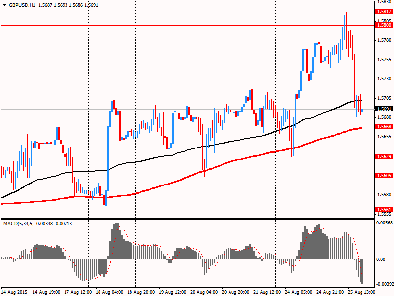 Фунт резко подешевел против доллара, преодолев уровень $1.5700. Эксперты отмечают, что доллар растет по всему спектру рынка, восстанавливаясь после вчерашнего обвала против иены и европейских валют. Глава ФРС Атланты Локхарт, один из главных ястребов FOMC в этом году, выступил вчера, вновь повторил, что ожидает, что ЦБ начнет повышение в этом году. Однако он все же продемонстрировал осторожность, оценивая ситуацию с долларом, девальвацией юаня и дальнейшим падением цен на нефть, которые могут усложнить процесс прогнозирования восстановления экономики.
