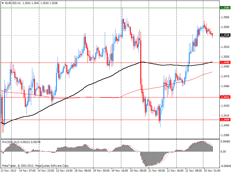 Также на этой неделе Статистическое бюро Японии может сообщить, что потребительские цены в стране выросли в октябре на 0,9% в годовом выражении после повышения на 0,7% месяцем ранее. Усиление инфляции будет свидетельствовать об успешности усилий Банка Японии по восстановлению экономики страны. Сегодня в Токио заместитель министра финансов Японии сообщил, что дефляция в стране подходит к концу и экономика начинает восстанавливается.