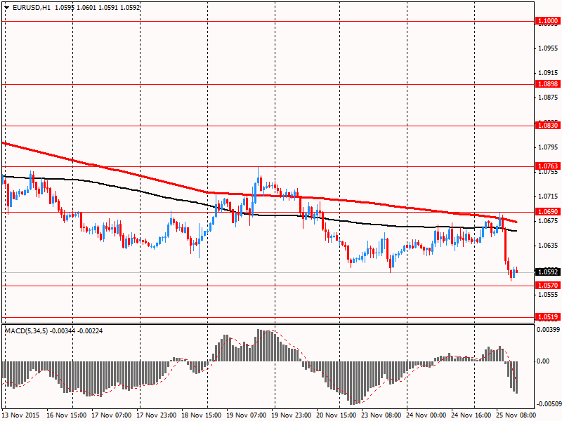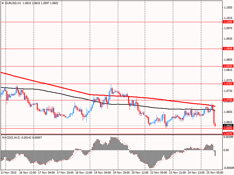 Евро ранее резко обвалился против доллара, опустившись при этом ниже уровня $1.0600. Основной причиной были сообщения информационного агентства Reuters о том, что чиновники ЕЦБ рассматривают возможность увеличение размера программы покупки облигаций и введения двухступенчатой комиссии для банков, которые хранят свою наличность в ЕЦБ. Напомним, ближайшее заседание ЕЦБ запланировано на 3 декабря. Кроме того, сегодня представитель ЕЦБ Констанцио заявил, что изменение объема программы покупки активов (QE) будет по-прежнему зависеть от новых данных, а также повторил, что в число целей ЦБ не входит валютный рынок. Также он добавил, что еврозона сможет пережить повышение процентных ставок ФРС США, которое ожидается уже в декабре.