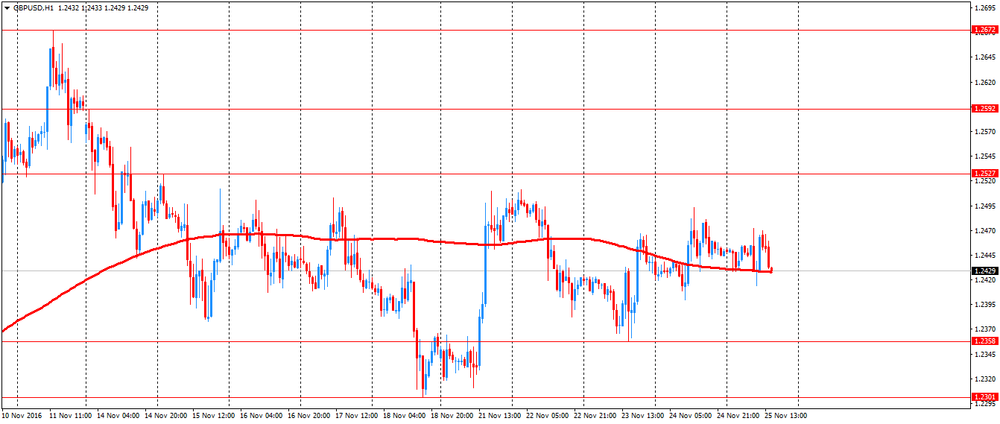 Фунт торговался разнонаправлено против доллара США, но при этом оставался в узком диапазоне, что было связано с низким объемом торгов на рынке. Небольшое влияние на фунт также оказали данные по Британии. Управление национальной статистики сообщило, что в Великобритании экономический рост замедлился согласно предварительной оценке в третьем квартале. Валовой внутренний продукт вырос на 0,5 процента последовательно, медленнее, чем расширение на 0,7 процента, зарегистрированное во втором квартале. Последовательный темп роста был оставлен без пересмотра по сравнению с предварительной оценкой, опубликованной 27 октября. Это был 15-й квартал подряд положительного роста с первого квартала 2013 года. В годовом исчислении ВВП поднялся на 2,3 процента в третьем квартале, без пересмотра от предыдущей оценки. Разбивка расходов со стороны ВВП показала, что расходы домохозяйств и государственные расходы увеличились на 0,7 процента и 0,4 процента. Валовое накопление основного капитала прибавило 1,1 процента.