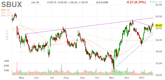 На текущий момент акции Starbucks Corporation (SBUX) котируются по $58,47 (-0,39%)