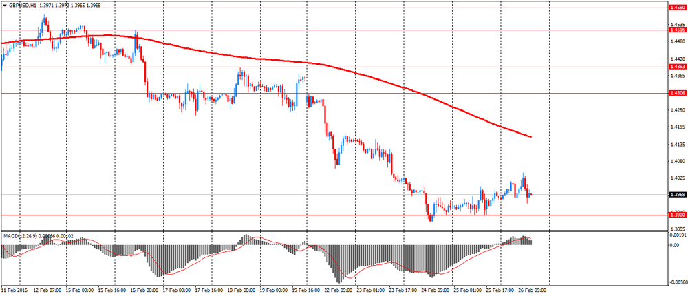 Фунт умеренно подешевел против доллара, вернувшись до уровня открытия. Первоначально фунт поднялся до $1.4000 на фоне общего снижения американской валюты и данных по ВВП Британии, однако после публикации данных по США спрос на доллар вернулся. Напомним, Управление национальной статистики (ONS) сообщило, что экономика Великобритании расширилась в соответствии с предварительными оценками в четвертом квартале. Валовой внутренний продукт вырос на 0,5 процента последовательно, в соответствии с предварительными оценками, опубликованными 28 января. Рост был немного быстрее, чем расширение на 0,4 процента в третьем квартале. На ежегодной основе ВВП вырос на 1,9 процента, в соответствии с ранее опубликованной оценкой. В четвертом квартале выпуск в сфере услуг поднялся на 0,7 процента последовательно, в соответствии с предварительными оценками. Выпуск в сфере услуг вырос на 2,5 процента в 2015 году после роста на 3,3 процента. В 4-м квартале инвестиции в бизнес расширились на 2,4 процента по сравнению с 2014 годом. В 2015 году инвестиции выросли на 4,7 процента.