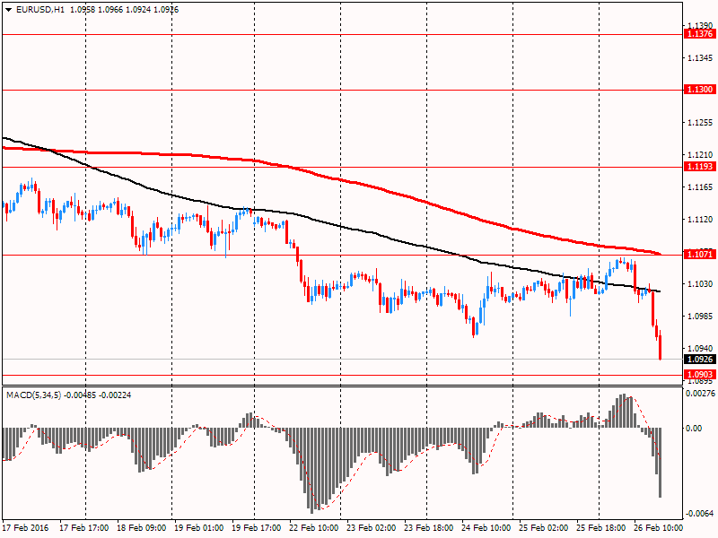 Доллар значительно подорожал против евро, что главным образом было связано с публикацией лучших, чем ожидалось, данных по ВВП США. Дополнительную поддержку оказала статистика по личным доходам и расходам американских потребителей. Министерство торговли сообщило, в США экономический рост замедлился в четвертом квартале, но не так резко, как первоначально предполагалось, в то время как бизнес стал менее агрессивным в усилиях по сокращению нежелательных запасов, которые могли бы повредить выпуску в течение первых трех месяцев 2016 года. Валовой внутренний продукт вырос на 1,0 процента годовых вместо ранее сообщаемых темпов на 0,7 процента, сообщило в пятницу в своей второй оценке ВВП. Экономисты ожидали, что рост ВВП в четвертом квартале будет пересмотрен в сторону понижения до 0,4 процентов. Экономика росла со скоростью 2,0 процента в третьем квартале. Компании накопили запасов на сумму $81,7 млрд., а не $68,6 млрд., о которых сообщалось в прошлом месяце. Это отражает восходящий пересмотр корректировки оценки запасов. Пересмотр с повышением темпов роста ВВП в четвертом квартале также отражает меньший дефицит торгового баланса, чем первоначально предполагалось, так как импорт сократился. Дефицит торгового баланса вычитает 0,25 процентного пункта от роста ВВП вместо 0,47 процентных пункта, о которых сообщалось в прошлом месяце. Бизнес расходы на оборудование сократились только на 1,8 процента в прошлом квартале, по сравнению с предыдущим показателем 2,5 процента. Бизнес расходы на нежилые структуры сократились на 6,6 процента, а не на 5,3 процента, о которых правительство сообщило в прошлом месяце. Госрасходы снизились на 0,1 процента вместо +0,7 процента.