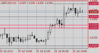 Поддержку фунту по прежнему оказывают опубликованные сегодня данные по ВВП за второй квартал. Согласно официальной статистике , рост ВВП Британии во втором квартале составил 0.2% кв/кв, что ниже предыдущего значения в +0.5%. По мнению аналитиков, показатель мог вырасти на 0.7%, если бы не землетрясение в Японии, дополнительные выходые в связи с королевской свадьбой.