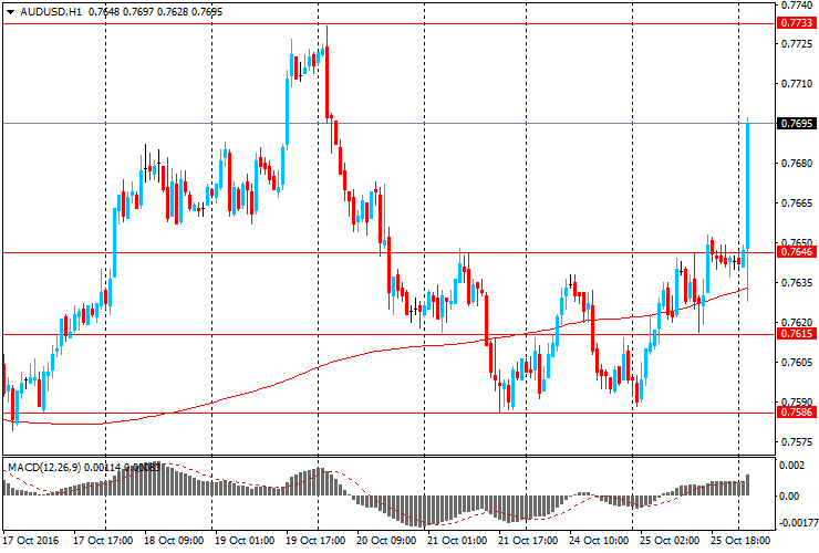 Пара AUD/USD резко выросла с 0,7635 до 0,7695 после публикации данных по инфляции в Австралии. Как сообщило сегодня Австралийское бюро статистики индекс потребительских цен в третьем квартале вырос на 0,7%, что выше предыдущего значения и прогноза экономистов 0,4%. в годовом исчислении данный индикатор увеличился на 1,3%, что также выше прогноза 1,1%