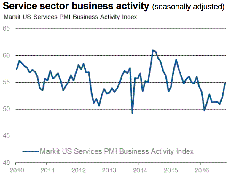 Вместе с тем, предварительные данные, представленные Markit Economics, показали, что активность в сфере услуг США продолжила расширятся в августе, и достигла самого высокого уровня с ноября 2015 года. Индекс менеджеров по снабжению (PMI) для сферы услуг в октябре составил 54,8 пункта по сравнению с 52,3 пункта в предыдущем месяце. Напомним, чтение выше 50 пунктов указывает на расширение активности в секторе. Экономисты ожидали, что показатель составит 52,3 пункта.