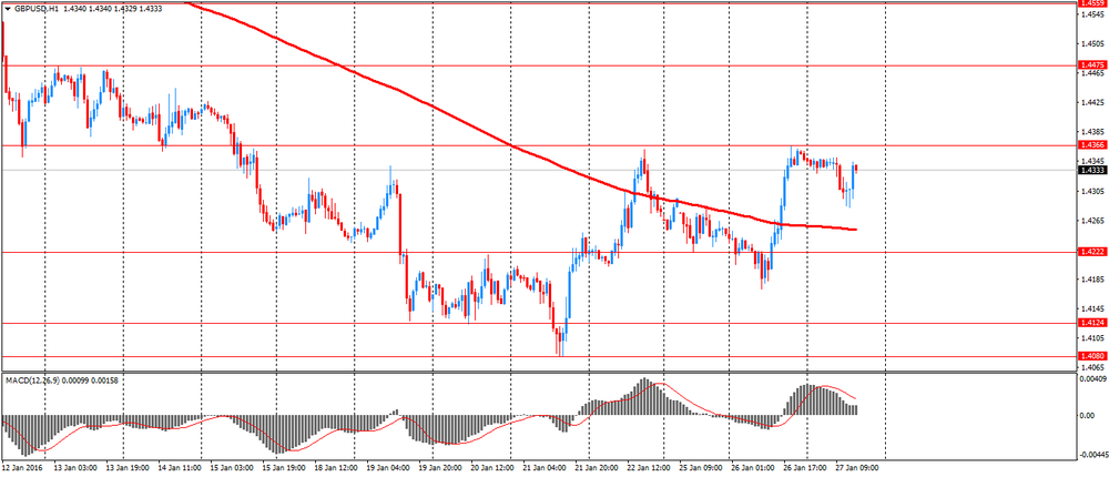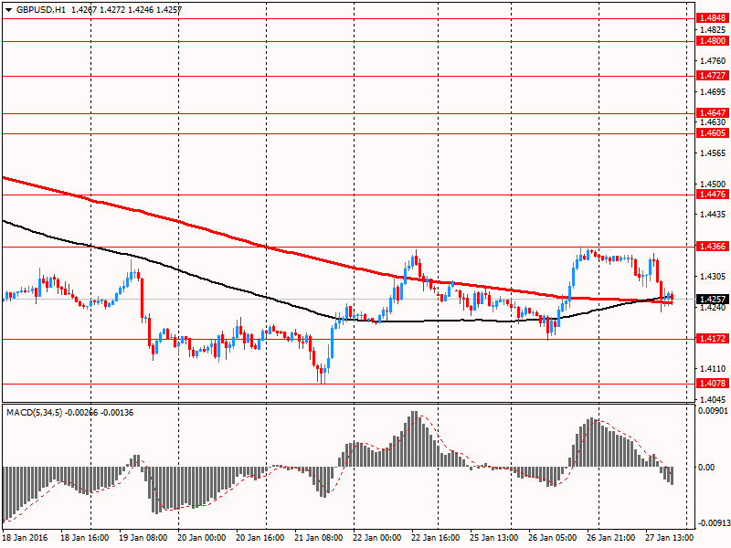 Небольшое давление на фунт оказывают заявления главы Банка Англии Марка Карни. Он подтвердил, что условия для повышения процентных ставок отсутствуют, добавив, что при необходимости Банк может даже понизить ставку. По поводу декабрьского повышения ставок ФРС Карни сказал, что экономика США - "самая закрытая из развитых экономик". По его словам, повышение ставки ФРС внесло вклад в дестабилизацию рынков, но не было его основной причиной. Согласно опубликованному опросу, экономика Британии достаточно безболезненно восстановится после непростого начала 2016 года. По результатам опроса экономистов, проведенного Centre for Macroeconomics, 70% респондентов полагают, что падение рынка акций, низкие цены на бензин и замедление развивающихся экономик по преимуществу не затронут экономику Великобритании. Две трети опрошенных также полагают, что перспективы роста мировой экономика также серьезно не ухудшились.