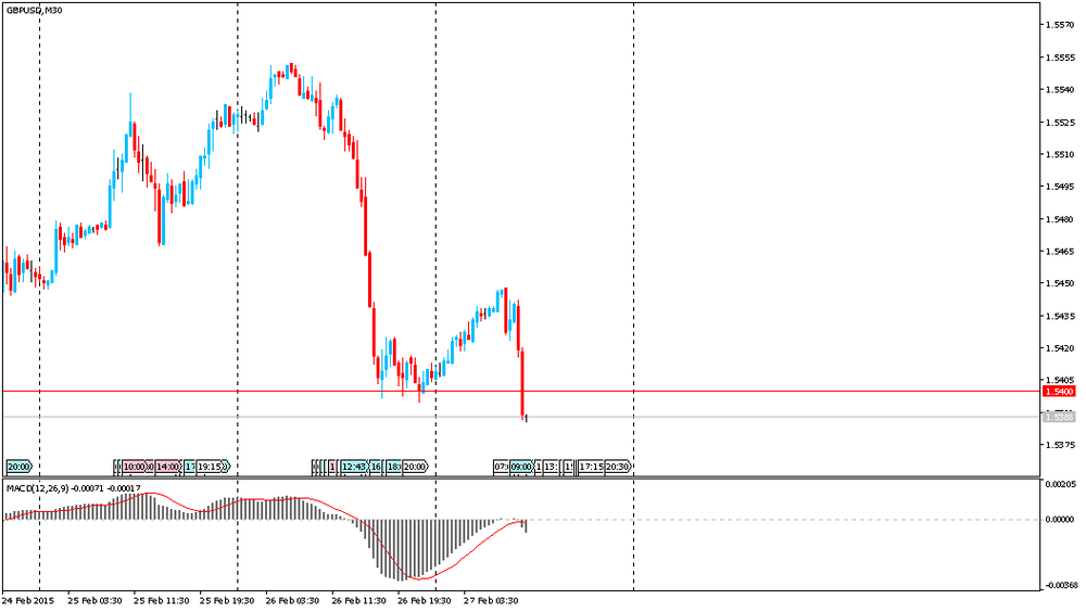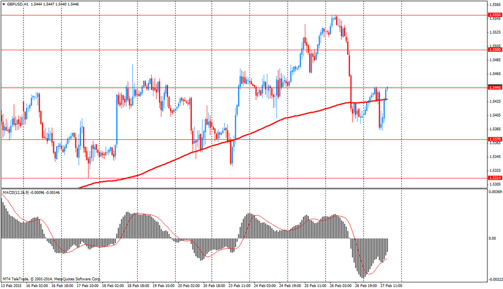 Также участники рынка продолжали оценивать данные по Британии. Напомним, валовой внутренний продукт вырос на 0,5 процента за квартал в четвертом квартале, в соответствии с первой оценкой, опубликованной 27 января. Темпы роста снизились с 0,7 процента в третьем квартале. В четвертом квартале ВВП вырос на 2,7 процента по сравнению с прошлым годом, что также осталось не отредактировано по сравнению с предыдущей оценкой. В 2014 году в целом ВВП расширился на 2,6 процента по сравнению с предыдущим годом. Рост за весь год также остался неотредактированным. Объем производства вырос на пересмотренные 0,1 процента, причем производство в обрабатывающей промышленности поднялось на 0,2 процента. Выход в секторе услуг вырос на 0,8 процента. Между тем, объемы строительства упали на пересмотренные 2,1 процента. В другом докладе УНС показало, что индекс услуг увеличился на 3,6 процента в декабре.