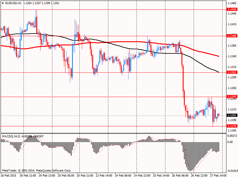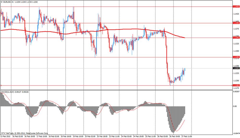Доллар резко вырос против евро, обновив при этом месячный максимум, что было связано с выходом американских данных по ВВП и потребительскому доверию. Министерство торговли сообщило, что валовой внутренний продукт, общий показатель товаров и услуг, произведенных в экономике, расширился на 2,2% в годовом исчислении в четвертом квартале. Это было слабее, чем первоначальная оценка в 2,6%, о которой сообщалось в прошлом месяце. Экономисты ожидали, что в четвертом квартале ВВП вырастет на 2,1%. Последние цифры показывают, что прорыв на 5% в третьем квартале и на 4,6% во втором квартале были неустойчивыми. Для 2014 года в целом ВВП увеличился на 2,4%, что немного лучше, чем средний рост 2010-2013 гг на уровне 2,2%. Для сравнения, экономика росла в среднем на 3,4% в год в течение 1990-х годов. Общая картина в прошлом квартале был смешанной: потребрасходы выросли самым быстром темпом за 4-е года, но инвестиции в бизнес замедлились.