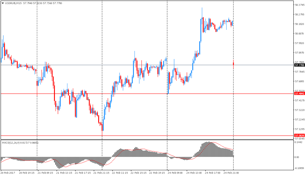 Определенное давление на доллар оказали смешанные данные по США. Министерство торговли сообщило, что новые заказы на сделанные в США капитальные товары неожиданно снизились в январе после трех месяцев подряд сильного роста, слегка изменив взгляды на то, что производство восстанавливается после продолжительного спада на фоне роста цен на сырьевые товары. Согласно данным, необоронные заказы на капитальные товары без учета воздушных судов, внимательно отслеживаемый датчик планов бизнес-расходов, снизились на 0,4 процента после пересмотренного вверх увеличения на 1,1 процента в декабре. Экономисты прогнозировали, что заказы на основные капитальные товары вырастут на 0,5 процента. Падение в январе основных заказов на капитальные товары, вероятно, отражает осторожность в деловых кругах, поскольку они ожидают детали предлагаемой налоговой реформы администрации Трампа.