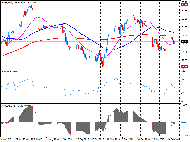 Компоненты индекса DOW преимущественно в минусе (19 из 30). Больше остальных упали акции Verizon Communications Inc. (VZ, -1.46%). Лидером роста являются акции Caterpillar Inc. (CAT, +2.00%).