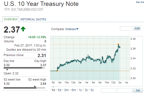 Что касается доходности 10-и летних государственных облигаций США, сейчас она находится на уровне 2,37% (+5 б.п. или 2,19%).