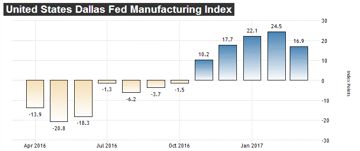 Кроме того, как показали данные, предоставленные Федеральным резервным банком Далласа, деловая активность производителей Техаса сильно ухудшилась в марте, зафиксировав первое падение на последние 7 месяцев. Кроме того, мартовское значение оказалось ниже прогнозов экспертов. Согласно отчету, производственный индекс ФРБ Даллас в марте упал до 16,9 пункта с 24,5 пункта в феврале. Эксперты ожидали, что индекс опустится лишь до 22,0 пункта. Напомним, значение индекса выше нуля говорит о росте деловой активности.