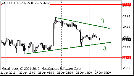 Если паре удастся закрепится ниже линии поддержки фигуры, то дальнейшее снижение возможно к $26.45 (138.2% FIBO $27.60-$26.80).